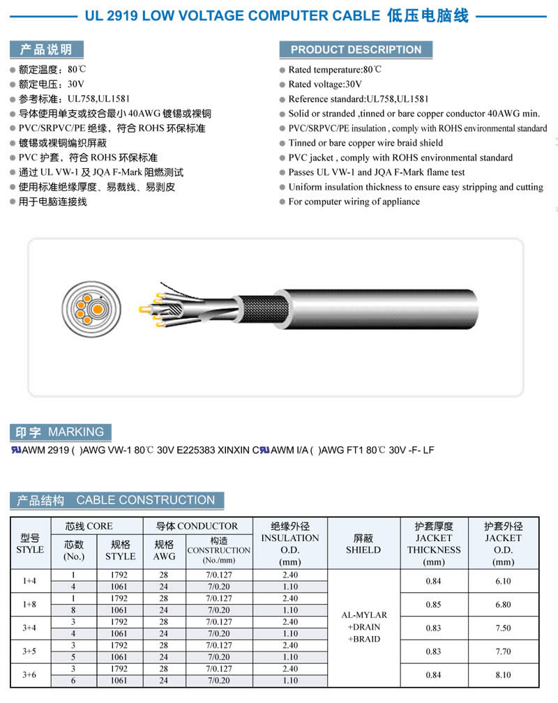 UL 2919 LOW VOLTAGE COMPUTER CABLE