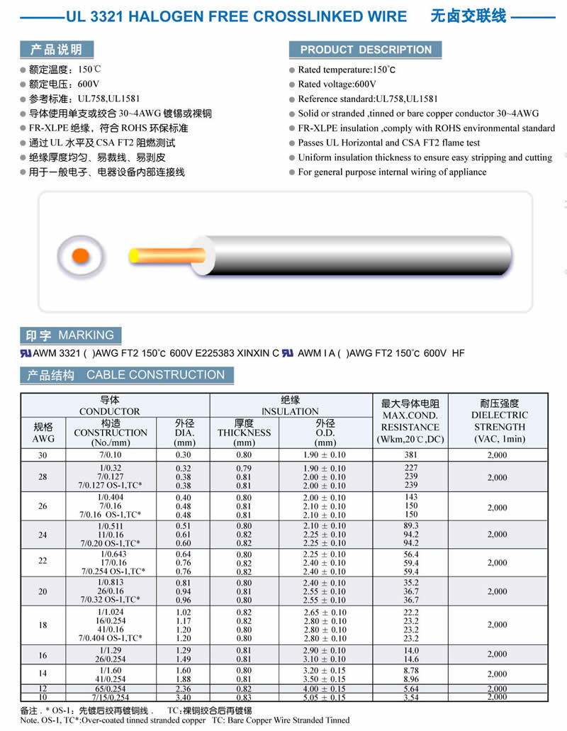 UL 3321 HALOGEN FREE CROSSLINKED WIRE